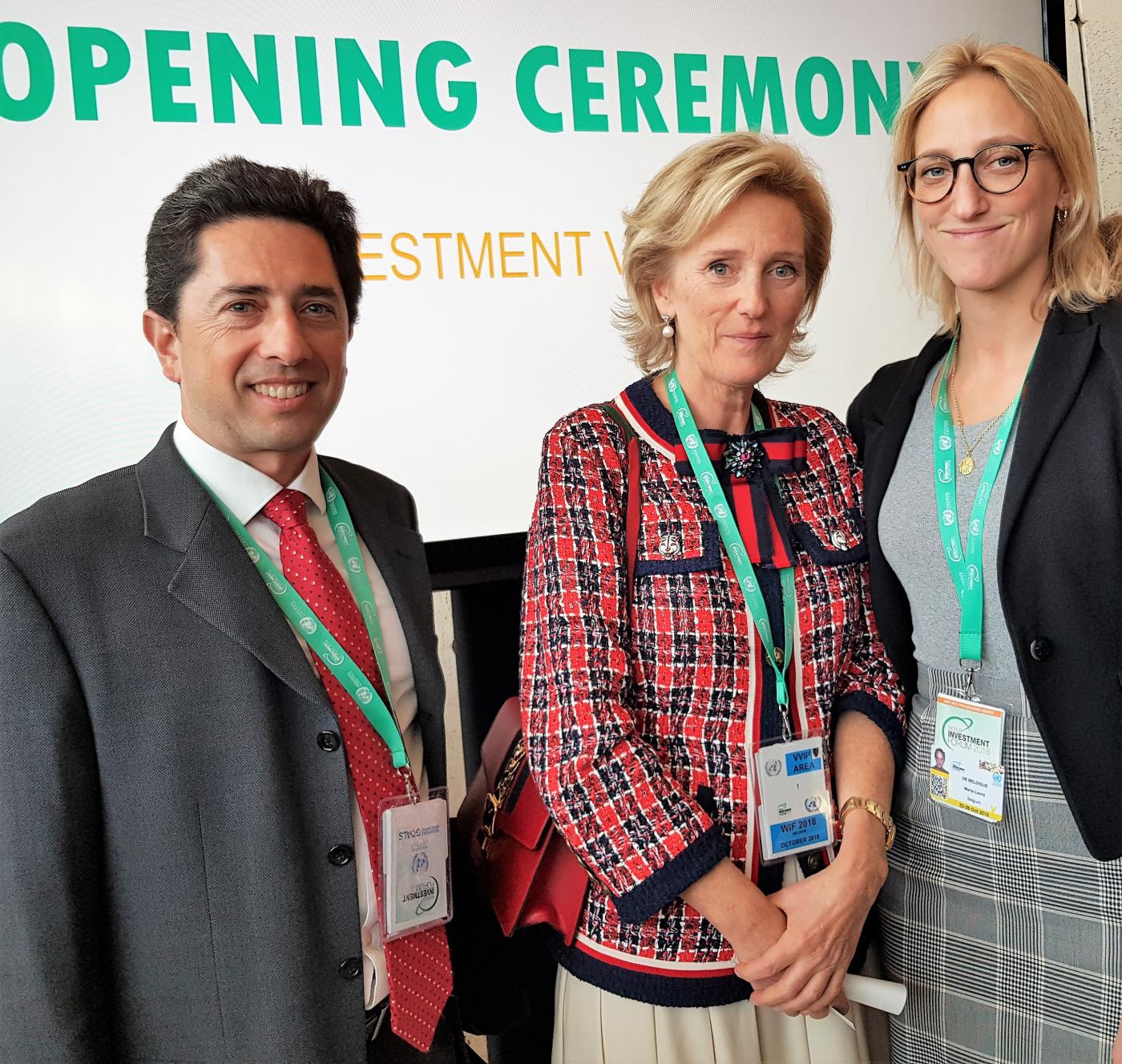 Princess Astrid of Belgium, accompanied by her daughter Princess Maria-Laura, opened the Official Ceremony at the World Investment Forum with UNCTAD Secretary-General Mukhisa Kituyi from Kenya, and Deputy Secretary-General Isabelle Durant, former Belgian minister.