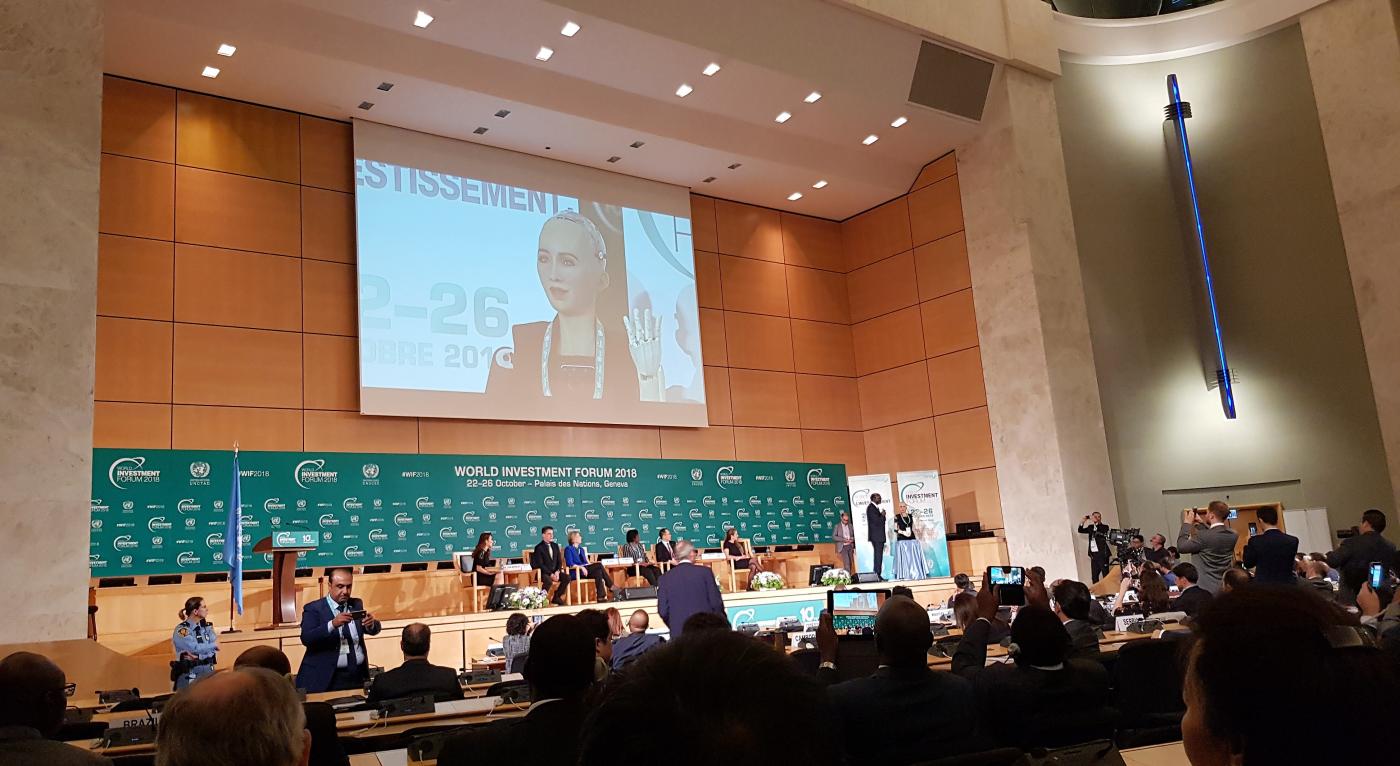 Along with participants including heads of state, one of the panels included – as a speaker – Sophia, the humanoid robot combining human-like expressions and artificial intelligence, allowing the UNCTAD Secretary-General to interact with Sophia during the panel session.